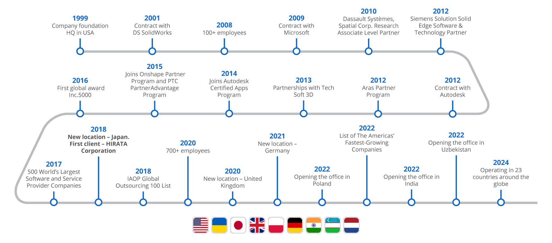 Japan, renowned for its cutting-edge technological advancements, represents a fertile ground for innovation. In line with our strategic vision for global expansion, business sustainability, and growth potential, AMC Bridge made a long-term commitment in 2018 to introduce its specialized software development services to Japanese engineering, manufacturing, and construction sectors. Our collaboration with esteemed clients such as Applied Technology Co., Ltd., Aras Japan, HIRATA Corporation, JSOL Corporation, Kabuku Inc., Tech Soft 3D, and others, has enabled us to leverage our expertise in integrating workflows across design, production automation, and CAD/CAM systems, as well as robotics simulation and programming.