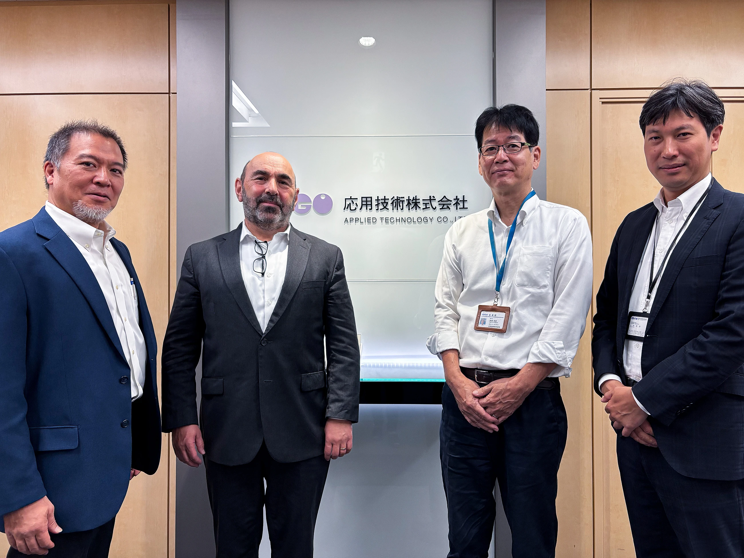 Pic3. AMC Bridge visits Applied Technology Co., Ltd.: Mr. Yoshida (Strategic Sales Manager, AMC Bridge), Mr. Tsinman (President, AMC Bridge), Mr. Funahashi (President/CEO), Mr. Konishi (Representative Executive Director, Head of Digital Transformation Business Division)