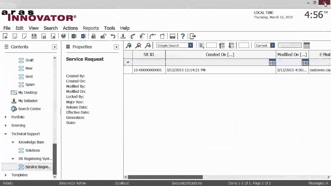 Service Request Registration System (SRRS) is Aras Innovator® 10.0 based system that allows Technical support personnel to register and manage service requests coming from customers.